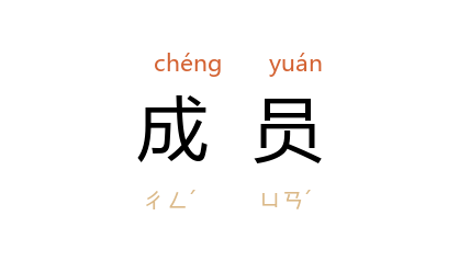 例如:「家中成员」、「他们这组成员是来自四面八方」。