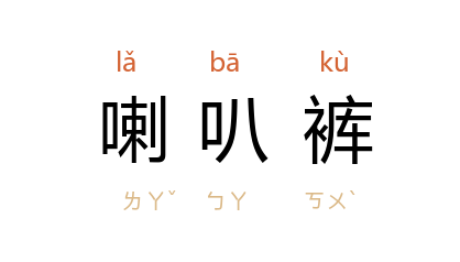 引《十月》1981年第3期:“儿子并没穿喇叭裤,也不迷新歌星。”《小说月报》1981年第10期:“赶明儿我要招工进了城,我就买条喇叭裤。”