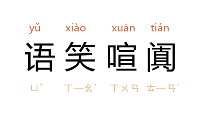 ⒈ 言语喧笑的声音大而杂乱。也作「语笑喧呼」、「语笑喧哗」。