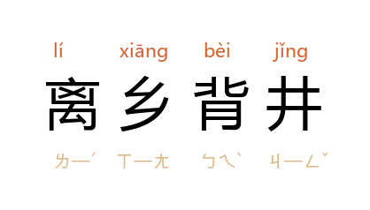 ⒈ 离开故乡,在外地生活。元·郑光祖也作「背井离乡」、「离乡背土」、「离乡避井」。