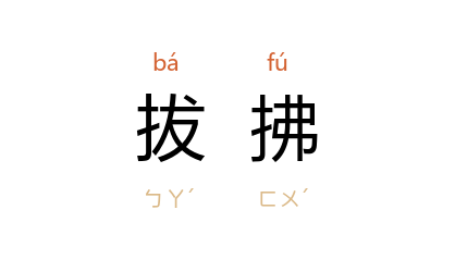 引《韩非子·难一》:“战而不胜,则国亡兵弱,身死名息,拔拂今日之死不及,安暇待万世之利?”王先慎 集解:“顾广圻 曰:‘拔拂同字,或当衍其一也。’ 先慎 曰:‘拔今日之死不及’与《孟子》‘救死犹恐不暇’语意正同。拂即拔之复字。”