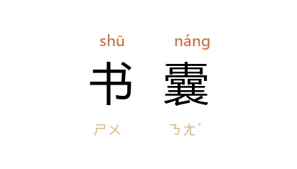 引唐 岑参 《送李别将摄伊吾令》诗:“词赋满书囊,胡为在战场。”金 董解元 《西厢记诸宫调》卷三:“收拾琴剑背书囊。”郑振铎 《集外诗·云与月》:“当你提了书囊出门时,我便要随了你。”