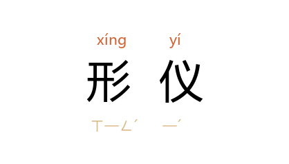 引《南齐书·王思远传》:“思远 清脩,立身简洁。衣服牀筵,穷治素净,宾客来通,輒使人先密覘视,衣服垢秽,方便不前;形仪新楚,乃与促膝。”唐 黄滔 《丈六金身碑》:“翌日,我公礼閲之,乃与梦中一类其形仪,长短大小无少差。”宋 苏轼 《颜书》诗:“况此字颇怪,堂堂伟形仪。”