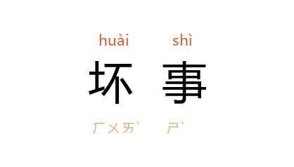 ⒊ 指发生了差错或不好的事情。如:坏事了,赶不上火车了!