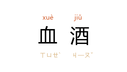 引《说唐》第二四回:“祝罢,众人举刀,在臂上刺出血来,滴入酒中,大家各吃一杯血酒。”章炳麟 《驳革命驳议》:“畏闻革命者,请先饮汝以一巵血酒,以壮君之胆,毋再饶舌,徒乱乃公意。”范长江 《陕北之行》:“刘伯承 对于西南情形很熟悉,还是他出来办交涉,和黑彝首领吃血酒,相约各不相犯。”