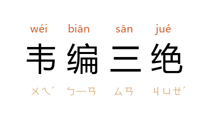 引《易经》,致使编联竹简的皮绳多次脱断。典出《史记·卷四七·孔子世家》。后用来比喻读书勤奋,刻苦治学。《抱朴子·外篇·自叙》:「圣者犹韦编三绝,以勤经业。」