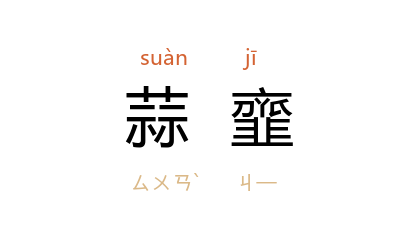 ⒈ 蒜汁。 《三国志·魏志·华佗传》:“佗 行道,见一人病咽塞,嗜食而不得下,家人车载欲往就医。