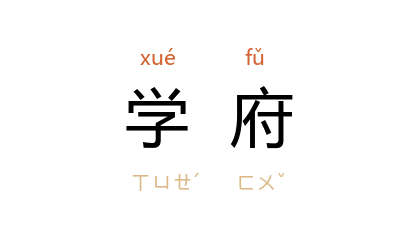 ⒉ 与学问、学术有关的机构,如秘书省、国子监之类。后称学校为学府。现亦特指较著名或规模较大的高等学校。