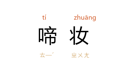⒈ 见“啼粧”。亦作“啼糚”。亦作“啼妆”。