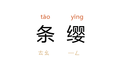引《周礼·春官·巾车》:“革路,龙勒,条缨五就。”郑玄 注:“条,读为絛。其樊及缨以絛丝饰之而五成。”《晏子春秋·外篇上十一》:“适 脱衰絰,冠条缨,墨缘,以见乎公。”
