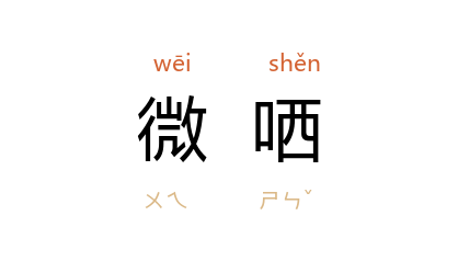 引《剪灯馀话·贾云华还魂记》:“娉 无言,惟微哂而已。”清 蒲松龄 《聊斋志异·胡四娘》:“夫人闻知,即亦无所可否,但微哂焉。”苏曼殊 《非梦记》:“刘 见生,慰问倍切,忽而微哂,引女郎之手。”