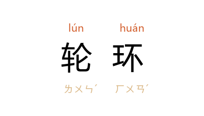 引前蜀 韦庄 《上春词》:“四时轮环终又始,百年不见 南山 摧。”元 行端 《拟寒山子诗》之一:“东东復西西,轮环哭哀哀。”清 和邦额 《夜谭随录·段公子》:“夫人与诸婢亦皆梦魔,大愳,而无如之何,唯与诸婢媪轮环鬭叶子,坐守达旦。”