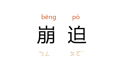 引唐 杜甫 《催宗文树鸡栅》诗:“吾衰怯行迈,旅次展崩迫。”仇兆鳌 注:“展崩迫,言迫促少休。”清 方文 《述哀》诗:“愿母神灵安,九原勿崩迫。”