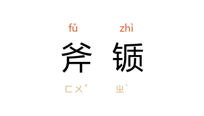 ⒉ 斧子与铁鍖,古代刑具。行刑时置人于鍖上,以斧砍之。