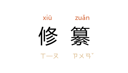 引宋 曾巩 《英宗实录院申请》:“乞下尚书司封,疾速检借 嘉祐 八年四月至 治平 四年正月八日已前,中书除改百官官位姓名勑黄,照证修纂。”明 叶盛 《水东日记·南都人物之盛》:“志勤修纂,如学士 周公。”陈天华 《警世钟》:“到了 乾隆 年间,修纂国史,把投降他的官员,如 洪承畴 等,尽列在《贰臣传》中。”