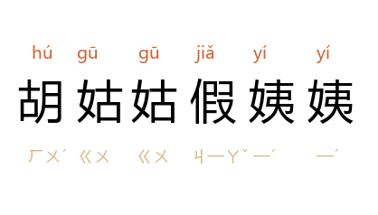 引元 无名氏 《谢金吾》第三折:“俺本是深宫内苑帝王姬,如今在琼楼朱邸做贵臣妻,家藏着丹书铁券有光辉。你这贼不知那个知?怎将俺做的胡姑姑也假姨姨!”元 无名氏 《货郎旦》第一折:“都是些胡姑姑假姨姨厅堂上坐,待著我供玉饌饮金波。”《醒世姻缘传》第十九回:“偏你这些老婆们,有这们些胡姑姑假姨姨的。”