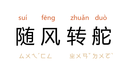 ⒈ 比喻顺著情势的发展而转变态度。也作「顺风转舵」、「随风倒舵」。