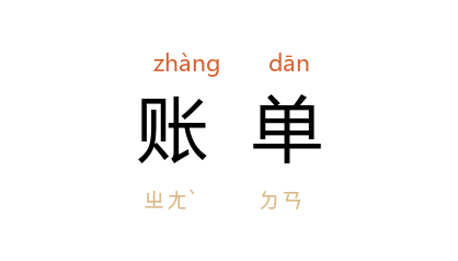 引鲁迅 《呐喊·端午节》:“他一回来,伊便将一迭账单塞在他的鼻子跟前。”老舍 《二马》第二段十二:“两个人忙着把东西吃完了,茶也喝净了, 李子荣 立起来和小姑娘要账单儿。”