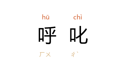 引《后汉书·祭遵传》:“众见 遵 伤,稍引退, 遵 呼叱止之。”叶圣陶 《四三集·寒假的一天》:“这当儿,人群中起了一种呼叱似的喊声:‘让开点!让开点!’”老舍 《骆驼祥子》十三:“等到天亮,街上有了大车的轮声与赶车人的呼叱。”