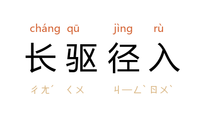 ⒈ 挺进迅猛,锐不可挡。汉·曹操〈劳徐晃令〉:「吾用兵三十余年,及所闻古之善用兵者,未有长驱径入敌围者也。」也作「长驱直入」、「长驱而入」。