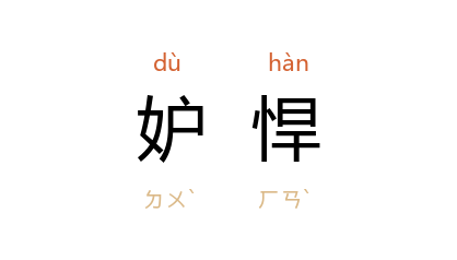 ⒈ 亦作“妬悍”。嫉忌而凶暴。