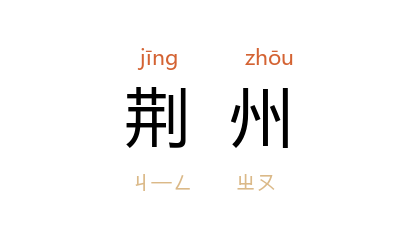 ⒈ 地名:(1) 古九州之一。今湖南、湖北及四川旧遵义、重庆二府,贵州旧思南、铜仁、思州、石阡等府,及广西的全县、广东的连县,皆属其地。(2) 湖北省旧府名。明、清时设置,治所在今江陵县。今湖北省宜都县到监利县的长江流域为其辖境。(3) 汉所置的十三刺史部之一。地处长江中游,三国至南北朝时代是政治、军事的重地。辖地约今湖北湖南两省及河南省西南部。
