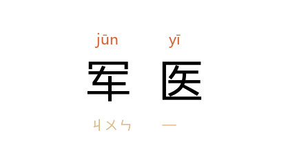 ⒈ 军队中担任卫生医疗工作的医生,一般由受过系统的军医教育或具有军队卫生医疗工作经验的人员充任。