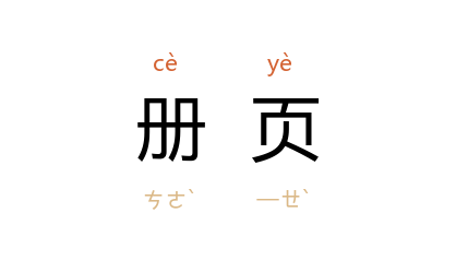 ⒈ 分页装裱成册的书画,称为「册页」,或指页数。也作「册叶」。