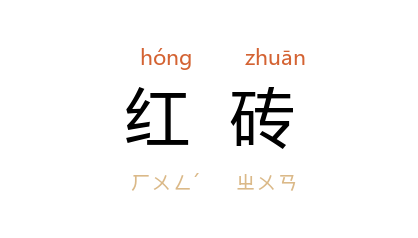 ⒈ 呈红色的黏土砖。用轮窑和隧道窑烧制。因砖中含红色高价铁,故呈红色。其耐久性、耐蚀性和韧性都比青砖差,但成本低、产量大,故应用广泛。