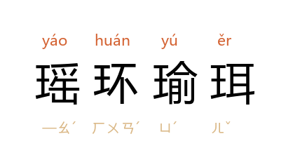 ⒈ 瑶:美玉;环:玉圈;瑜:美玉;珥:玉制的耳饰。比喻美好如玉的子弟。