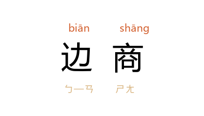 ⒈ 指边地的盐商。 明 弘治 以后,凡凭引行盐的盐商分边商、内商、水商三类。边商缴纳盐课,领取盐引,并照官定引价将引售与内商;内商专买边引,下场收盐上堆,并照官定盐价将盐售与水商;水商多是销岸商贩,专收内商食盐在指定引岸行销。 清 代,以上三种名目均废。但 四川 引盐运销 云南、贵州 两省的运商则仍称“边商”。