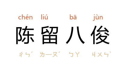⒈ 唐 格辅元 等八人,均为 陈留 人,以辞学擅名,时号“陈留八俊”。