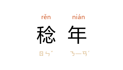 引唐 钱起 《江行无题》诗之三一:“岸草连荒色,村声乐稔年。”清 曹寅 《经郯城从行摘柿偶述》诗:“稔年餘木实,洼地喜天晴。”