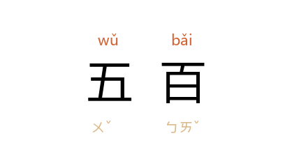 ⒈ 职官名:(1)古代军队以五人为伍,一伍之长称为「五百」。也称为「伍伯」、「伍长」。(2)古代户籍以五户为伍,负责管理一伍的人称为「五百」。也称为「伍伯」、「伍长」。(3)地方官府差役兵卒。宋·刘宰〈野犬行〉:「叫呼五百烦里闾,浅土元不盖头颅。」
