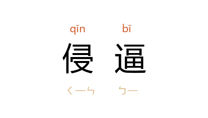引《管子·君臣上》:“姦心之积也,其大者有侵偪杀上之祸,其小者有比周内争之乱。”《后汉书·董卓传》:“明年春,将数万骑入寇 三辅,侵逼园陵,托诛宦官为名。”孙中山 《致黄兴书》:“中国 当此外患侵逼、内政紊乱之秋,正我辈奋戈饮弹、碎肉喋血之时。”