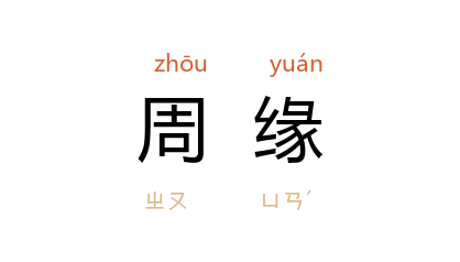 引《后汉书·礼仪志下》:“赠玉珪长尺四寸,荐以紫巾,广袤各三寸,緹里,赤纁周缘。”萧军 《八月的乡村》十三:“眼泪充在 安娜 底眼睛周缘。”