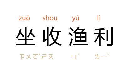 英reap the spoils of victory without lifting a finger; profit from others’ conflict; reap third party profit;