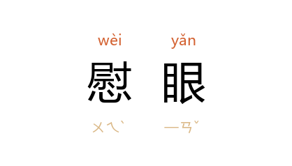 引宋 冯延登 《郾城道中》诗:“瘦梅疏竹未慰眼,只有清泪沾衣巾。”金 元好问 《鹊桥仙·同钦叔钦用赋梅》词:“东风容易莫吹残,暂留与 何郎 慰眼。”元 马致远 《陈抟高卧》第四折:“白酒樽旁,闲慰眼金釵十二行。”
