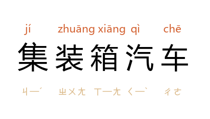 ⒈ 载运集装箱的专用运输汽车。在装载部位的四角设有固定集装箱的扭锁装置。通常采用半挂式、全挂式和双挂式,以半挂式为多。半挂式又有平板式和骨架式之分,前者有平板货台,也可用来装运普通长大货物;后者无货台,集装箱装到底盘骨架上,由扭锁装置固定,成为半挂车的强度构件。