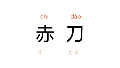 引《书·顾命》:“越玉五重,陈宝,赤刀、大训、弘璧、琬琰在西序。”孔颖达 疏:“上言陈宝,非宝则不得陈之,故知赤刀为宝刀也。”《文选·张衡<西京赋>》:“东海 黄公,赤刀 粤 祝,冀厌白虎,卒不能救。”李善 注:“《西京杂记》曰:东海 人 黄公,少时能幻,制蛇御虎,常佩赤金刀。”晋 葛洪 《抱朴子·崇教》:“所谓千里之足,困於盐车之下;赤刀之鑛,不经 欧冶 之门者也。”