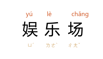 ⒈ 游艺区中的楼房、帐篷、围场或其他建筑物,内中包括展品和娱乐设备——亦称“游艺场”