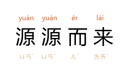 引《孟子·万章上》:「虽然欲常常而见之,故源源而来。」《二十年目睹之怪现状·第七五回》:「自从行出这个法子之后,户部里却多了一单大买卖,甚至有早上填出去的官照,晚上已经缴了的,那要嫖的人不免又要再捐一个,那才是源源而来的生意呢。」