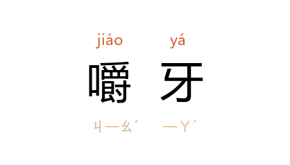 引《儿女英雄传》第三三回:“如果里头有个嚼牙的呢,他也不过是个人罢咧,我又有什么见不得他的呢?只管带来见我。”《白雪遗音·银纽丝·我亲家顶嘴》:“休胡吢,少嚼牙,乡里的人实可夸,不似姦懒油滑爱掛画。”