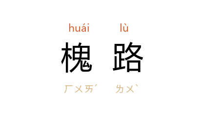引南朝 梁元帝 《长安道》诗:“雕鞍承赭汗,槐路起红尘。”北周 庾信 《兖州刺史广饶公宇文公神道碑》:“报功之册,则槐路是仪;赠行之典,则 荆 河 惟牧。”唐 陈子良 《赞德上越国公杨素》诗:“桂宫擅鸣珮,槐路独飞缨。”宋 梅尧臣 《袷享观礼二十韵》:“黄麾转槐路,朱輦驾云虬。”