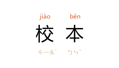 ⒈ 校雠者取某书一善本作底本,与各种不同本子和有关资料相核对,发现有讹误衍脱,则加以注明,这个核对校勘后的本子称“校本”。