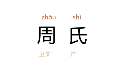 引汉 司马相如 《难蜀父老》:“反衰世之陵夷,继 周 氏之絶业,天子之亟务也。”《文选·刘琨<劝进表>》:“惠泽侔於 有虞,卜年过於 周 氏。”李善 注:“《左传》 王孙满 曰:成王 定鼎 郟鄏,卜世三十,卜年七百。”