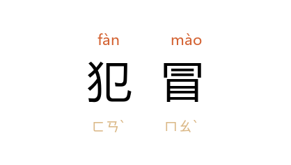 引晋 袁宏 《后汉纪·桓帝纪上》:“臣恐小人道长,遂成其败,犯冒天颜。”《再生缘》第十三回:“只为门生忽降閒,一朝犯冒老师前。”