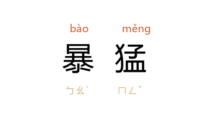 引《汉书·元帝纪》:“暴猛之俗弥长,和睦之道日衰。”《新唐书·文艺传上·杜甫》:“﹝ 甫 ﹞性褊躁傲诞,尝醉登 武(严武 )牀,瞪视曰:‘ 严挺之 乃有此儿!’ 武 亦暴猛,外若不为忤,中衔之。”宋 洪迈 《夷坚丁志·张氏狱》:“杨 早失父,其母 张氏,性暴猛,数与妇争詈。”
