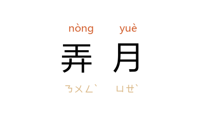 引南朝 陈后主 《三妇艳诗》之六:“大妇初调筝,中妇饮歌声,小妇春粧罢,弄月当宵楹。”唐 李白 《别山僧》诗:“何处名僧到水西,乘舟弄月宿 涇溪。”明 陈自得 《太平仙记》第一折:“他也曾弄月筛金在鹊桥。”