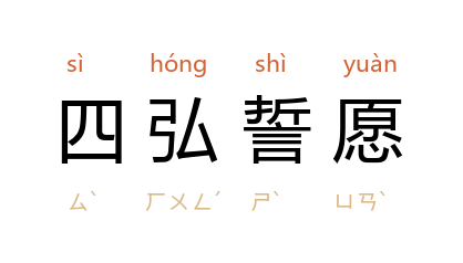 ⒈ 佛教徒的四大愿望。即众生无边誓愿度、烦恼无尽誓愿断、法门无量誓愿学、佛道无上誓愿成。